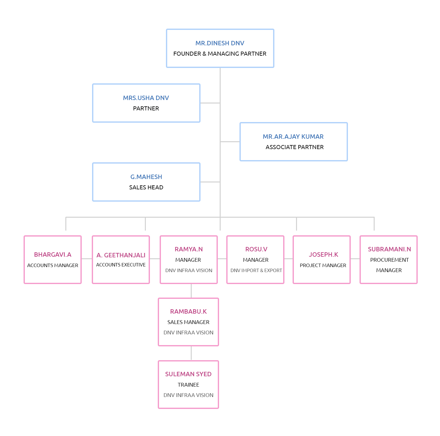 We at DNV do have a systematic and proactive approach to our process. We follow the best practices in the industry and we do engage the best consultants who expertise in their respective domains. As DNV Group - we deliver comprehensive interiors fit-out solutions What makes DNV Group different from others are the high levels of customer delight that we receive where customers come back for future prospects. We do provide end-to-end solutions with world-class quality and we do follow high standards that help us maintain good relationships with our Customers. We portray our field of expertise through our two different companies such as Import-Export & DNV Infraa Vision.